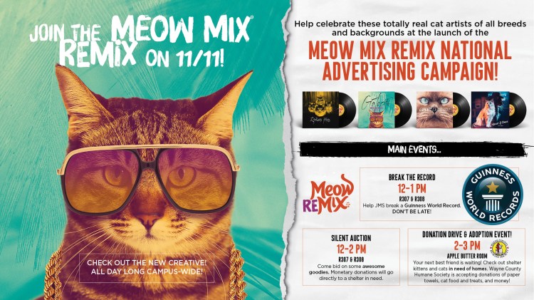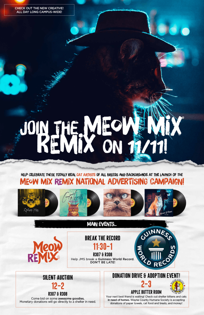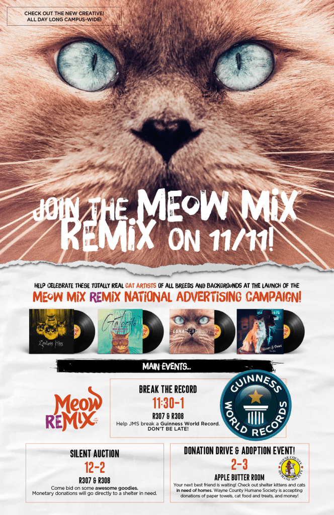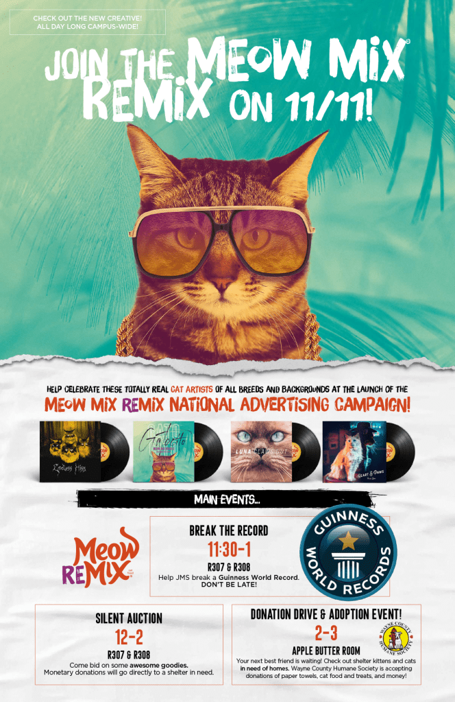 Develop posters and blast emails for the launch of “MEOW MIX REMIX” national campaign for internal company kickoff event.